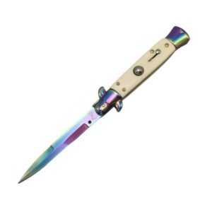 8.75 Inch Italiensk Stiletto Switch Kris Blade Fick Knife Vit med vitt handtag
