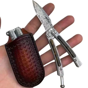 9 tum italiensk stilettstil OTF-kniv Damascus Etch