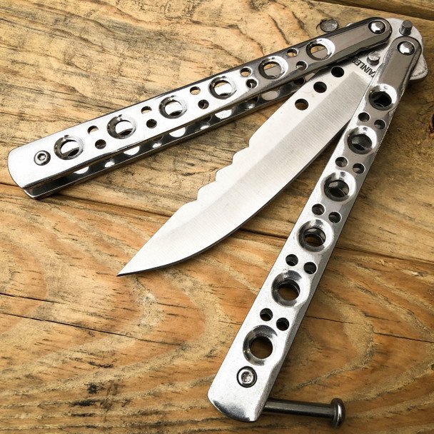 Denna balisong är skarp med massor av attityd. Det rostfria bladet mäter totalt 9″ och är perfekt för vardagligt bärande. Spärren låser handtagen i både öppet och stängt läge för att undvika oavsiktliga öppningar eller stängningar. Kul och lätt för trick/flipping-användning.