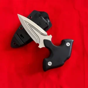 Jaktkniv med halv tand, ?verlevnadskniv f?r utomhusbruk, b?rbar sj?lvf?rsvarskniv – brun